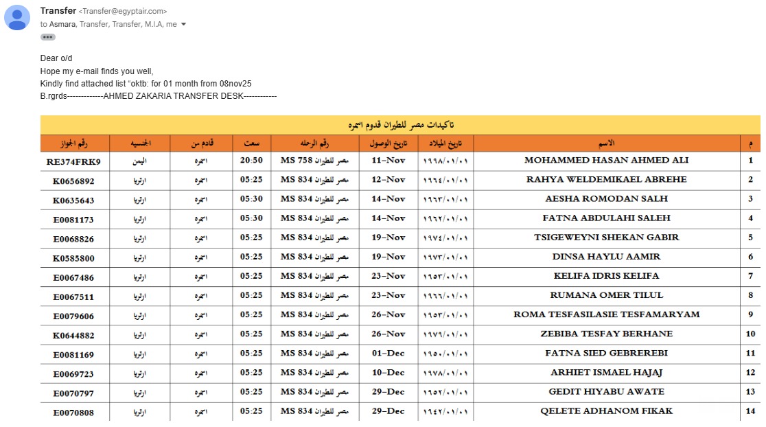 1️⃣ إرسال جواز السفر مع تذكرة مؤكدة